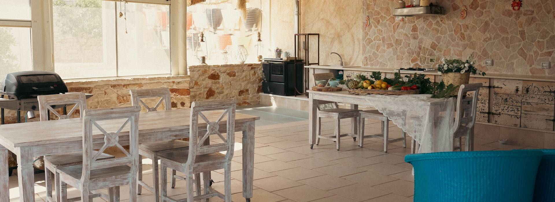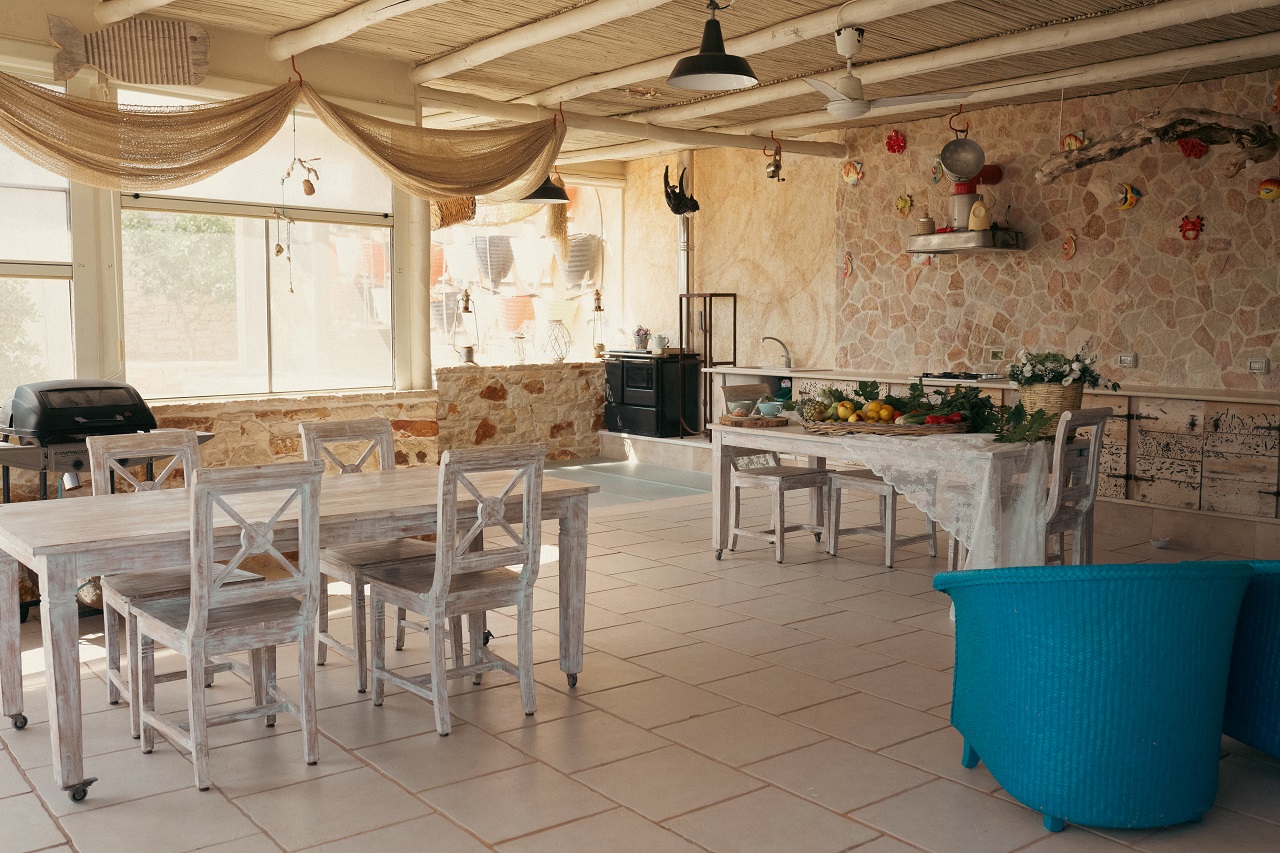 Ogni dettaglio di un trullo racconta una storia. Dalle forme circolari , al patio in cannucciato, fino all’orto con verdure stagionali sempre fresche. Ampi spazi per dedicarsi alla cucina e aree interne ed esterne per godersi momenti di puro relax al canto del mare e degli uccellini.